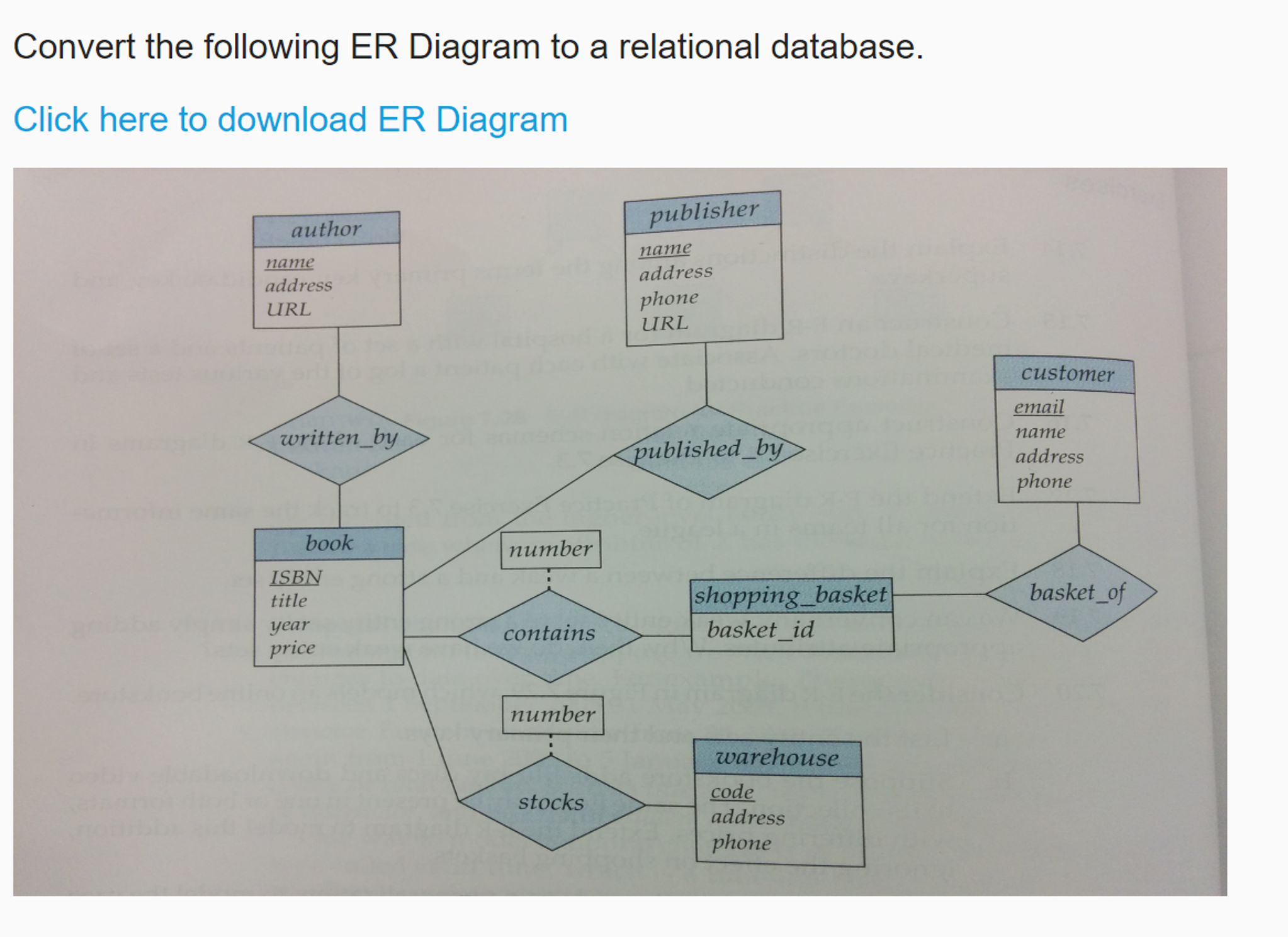 Well, you might not really use them while you are designing relevant er diagrams. Previous questionwhat is a weak relationship provide an example? The entities in the er for example, an inventory software used in a retail shop will have a database that. • add the primary key attribute (or attributes) of the entity on the one side of the relationship as a foreign key in.